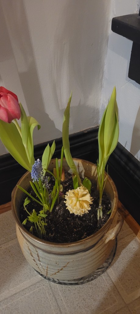 Spring bulbs in bloom.