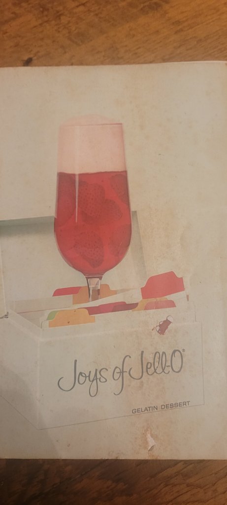 Every now and again, I run across the jello salad cookbook. It reminds me of my g’ma. Yesterday I made this one, we had it for supper tonight.