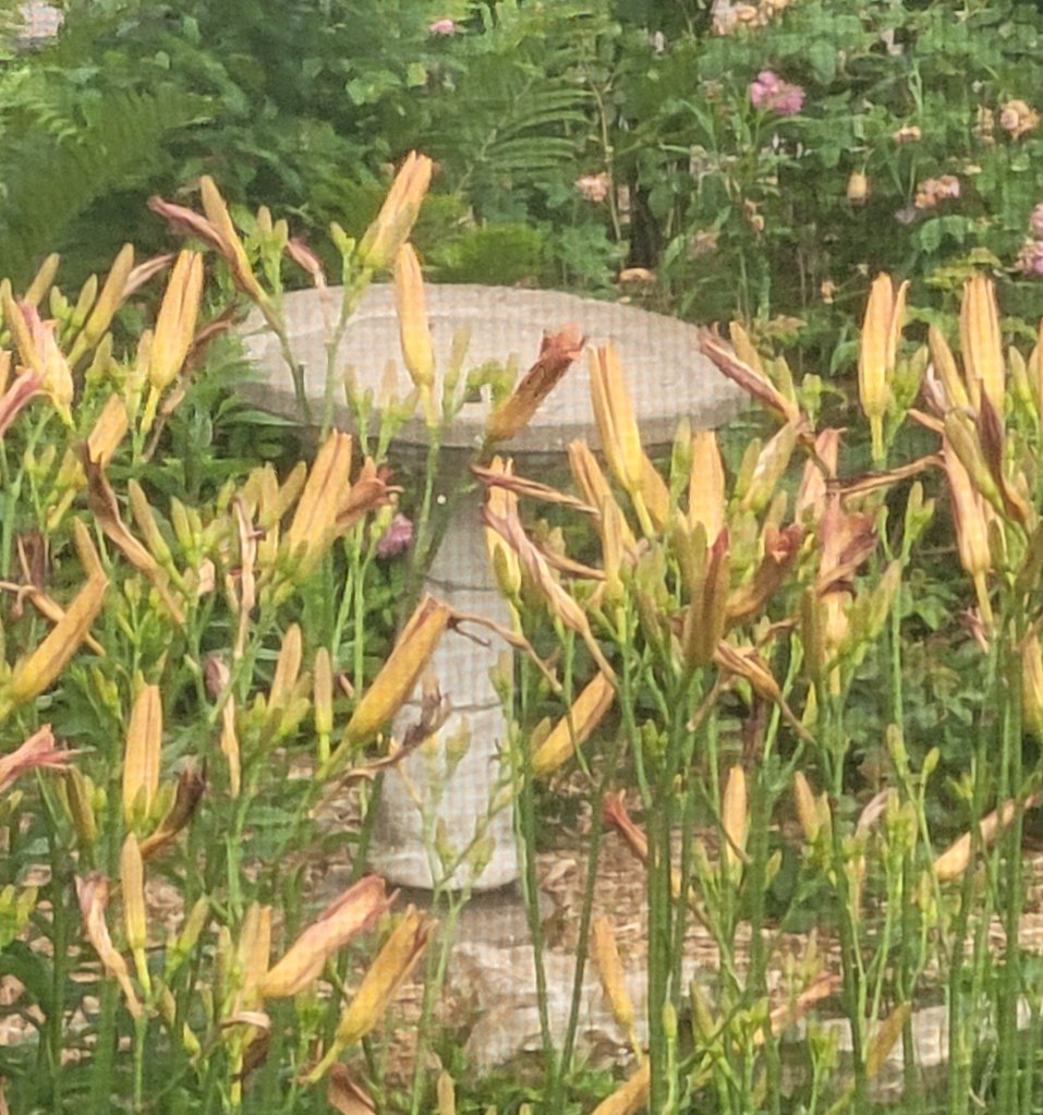 Liking the new to me birdbath. A giveaway from the neighbor.