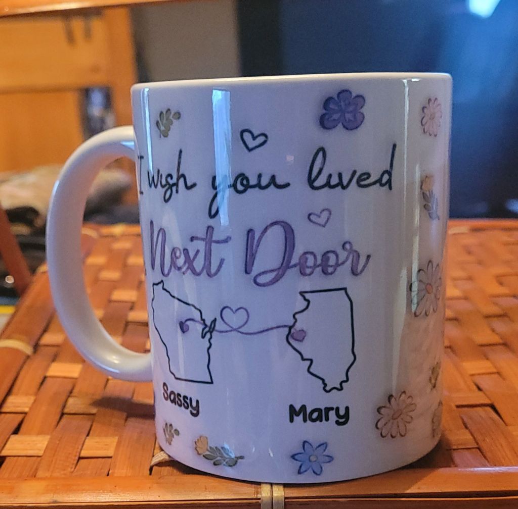 Coffee good… in my new cup from my friend MD… I love it!