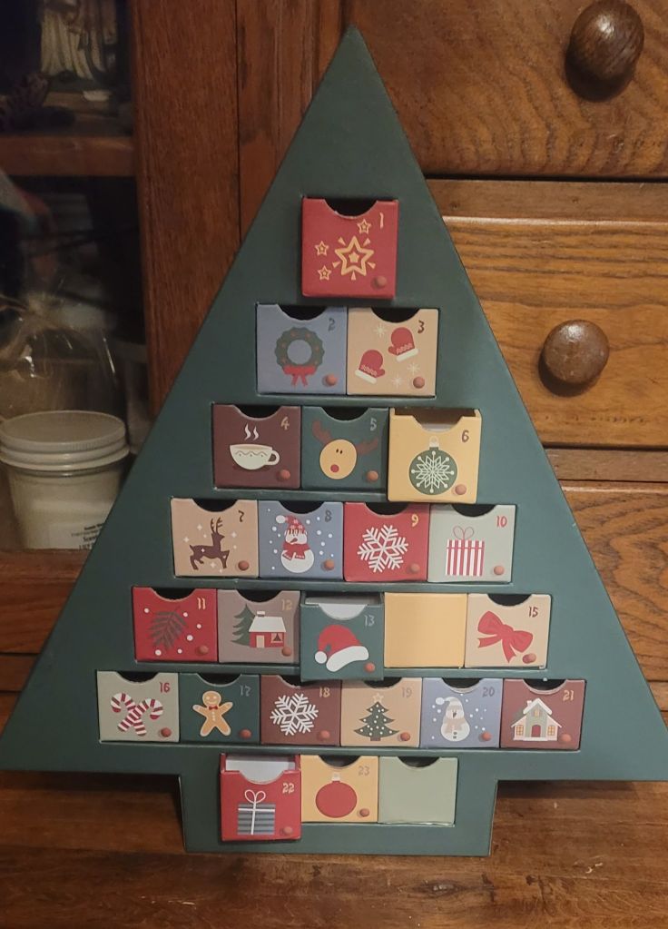 Advent begins Dec 1. St Andrew’s Christmas Novena begins Nov 30. Found a cute Advent calendar in the thrift shop. Need to find trinkets for the drawers. My Advent wreath is ready to be put together too. This year it is very different than years gone by. I’m looking forward to it.