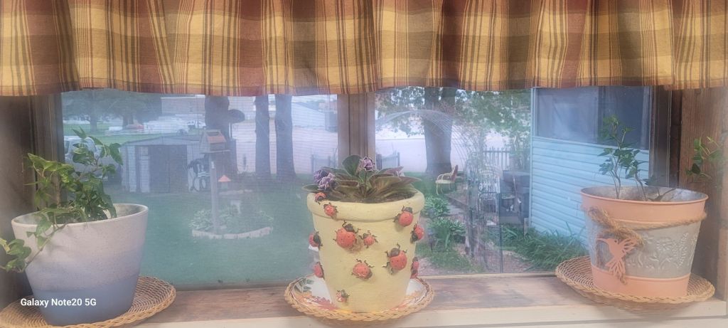 The w/c van was picked up on Saturday by the person considering taking over the NE Route. (I pray they do). Sunday, my SUV’s engine light came on while it shuddered, shook, and coughed.(It is now sitting at the mechanic’s). My wonderful neighbor to the east has loaned me her second car for today so that I can complete my obligations, while the man takes over the NW Route for today. I pray the repair bill is not horrid. We just finished putting new tires and all that entails on it last week. Beans are poking thru in the garden. Bridal Wreath shrubs are ready to blossom. Rose of Sharon and lilacs already fill the yard with color and a heavenly scent. Truly grateful we did not take the winterizing panels off either of the porches. This week is going to be chilly. The plants here in the office are doing well. I am truly blest.
