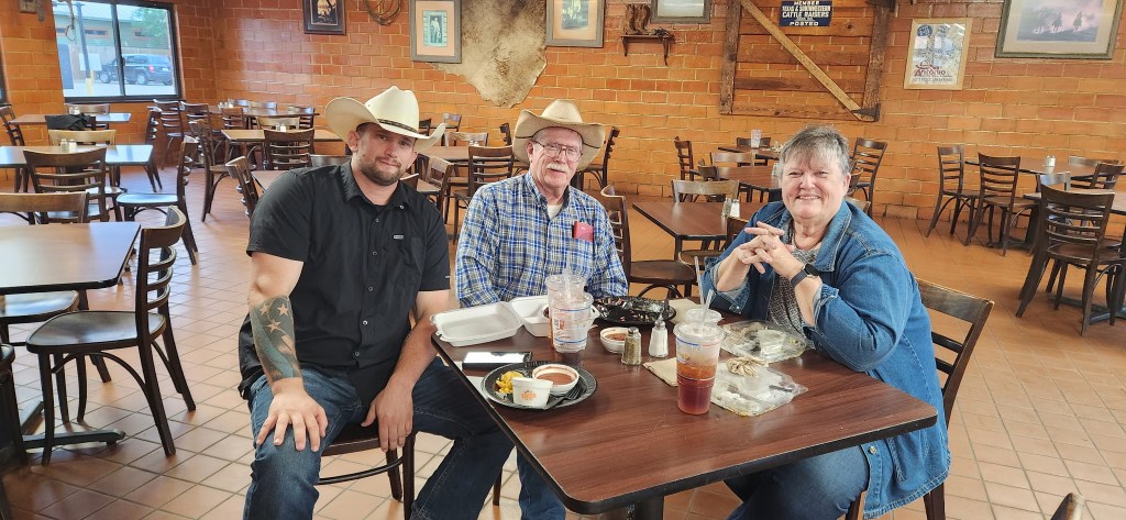 photo taken last evening by friend of Dennis’ at Bob Miller BBQ. As you can see I am huge. Thankfully I see Dr on the 1st and perhaps they will take this puffiness seriously. The backache is almost constant. My joints are stiff and sore and fluid output is not inline within fluid input.